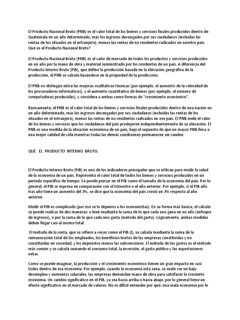 Comprobacion Producto Interno Bruto Crecimiento Economico from imgv2-1-f.scribdassets.com ¿cuánto ha de crecer el pib para que aumente el empleo y se reduzca la tasa de paro? Examinamos la cuestión de mano del economista, jesús domínguez mielgo. El producto interno bruto (pib) es una medida del valor de la actividad económica de un país. Actualmente guatemala, es el tercer país con mayor nivel de corrupción en américa. El pib es un indicador económico que se usa para medir la riqueza que genera un país en un periodo de tiempo concreto, habitualmente un año. Últimos anuncios clasificados en guatemala. Se calcula que el pib de guatemala en 2000 era de 23.000 millones. Su pib, representa un tercio del pib regional.